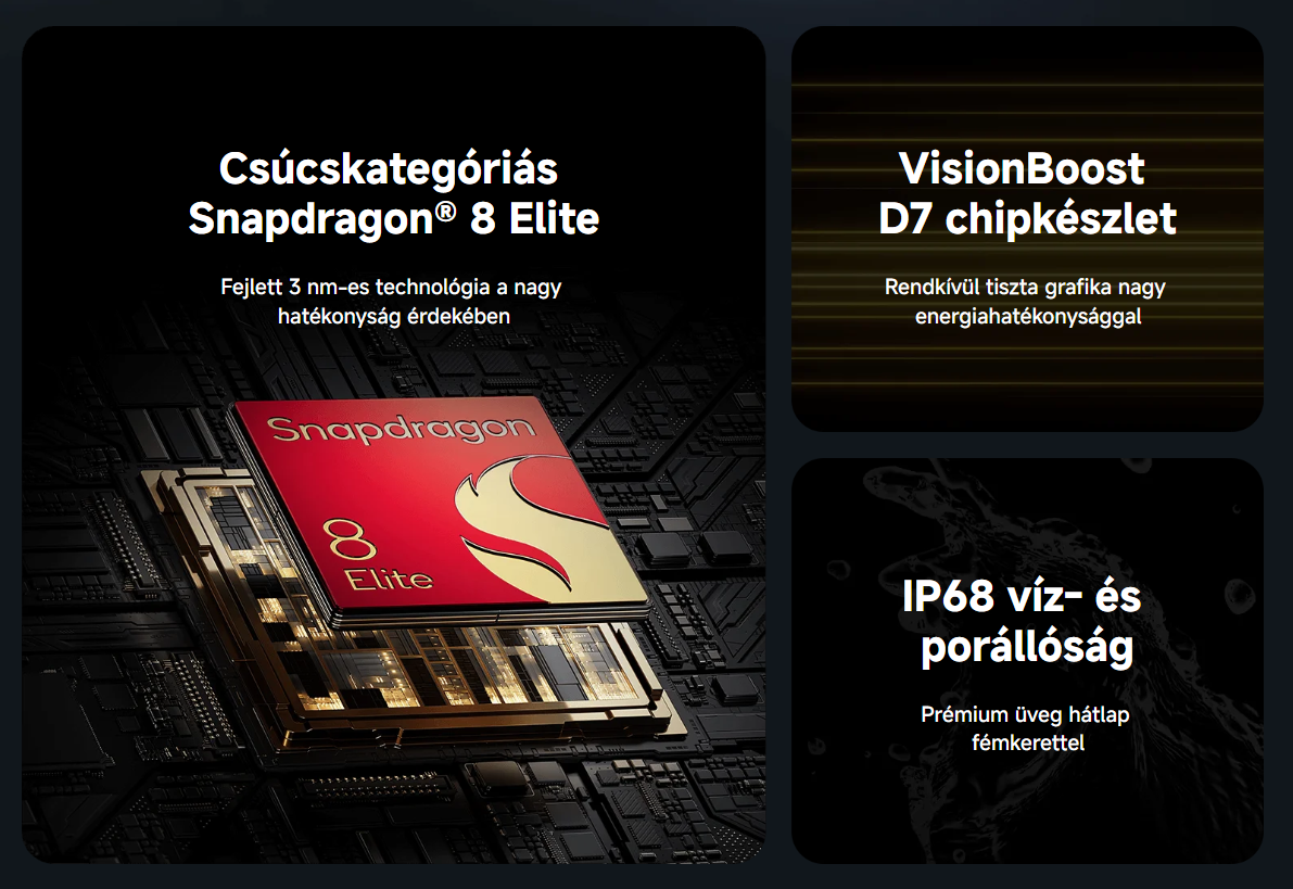 A Poco F7 Ultra belsejében a legújabb, 3 nm-es gyártástechnológián alapuló Snapdragon 8 Elite processzor dolgozik, amelyet az Oryon architektúra tesz igazán erőteljessé. Ez a chip úgy kezeli a nagy terhelésű alkalmazásokat, mint más telefonok az időjárás-alkalmazást.