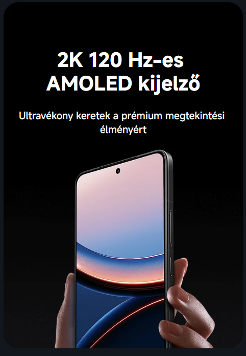 A Xiaomi készülék kijelzője 6,67 hüvelykes 2K Flow AMOLED panel, ami egyszerre elképesztően szép és okos is. A 120 Hz-es frissítésnek és a 3200 nits csúcsfényerőnek köszönhetően a tartalmak minden körülmények között élesen és élénken jelennek meg. A körkörös polarizációs technológia és a 3840 Hz-es PWM fényerőszabályozás a szemedet is kíméli, így hosszabb használat után sem lesz kellemetlen érzésed.A Poco F7 Ultra egyúttal ultravékony kerettel érkezik, így még jobban elmerülhetsz a képernyő világában.