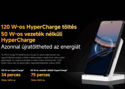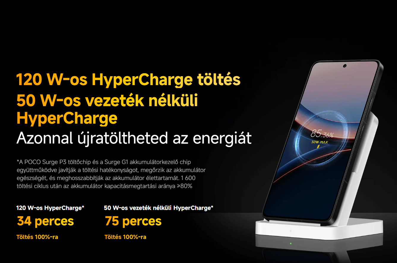Az 5300 mAh-s akkumulátor bőven elég egy egész napos intenzív használatra. Akár 15 órányi videózást vagy 13+ órányi navigációt is kibír egy töltéssel. Ha pedig lemerül, a 120W-os HyperCharge segítségével kevesebb mint 35 perc alatt újra csurig töltheted. Emellett ott a 50W-os vezeték nélküli töltés is, ha kábelt se akarsz csatlakoztatni.