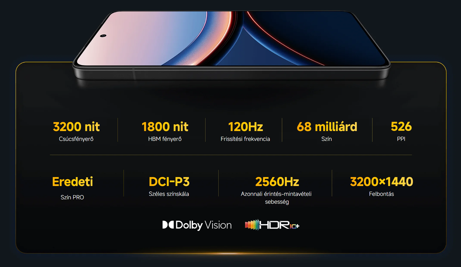 | Kijelző felbontása | 3200 x 1440 pixel |